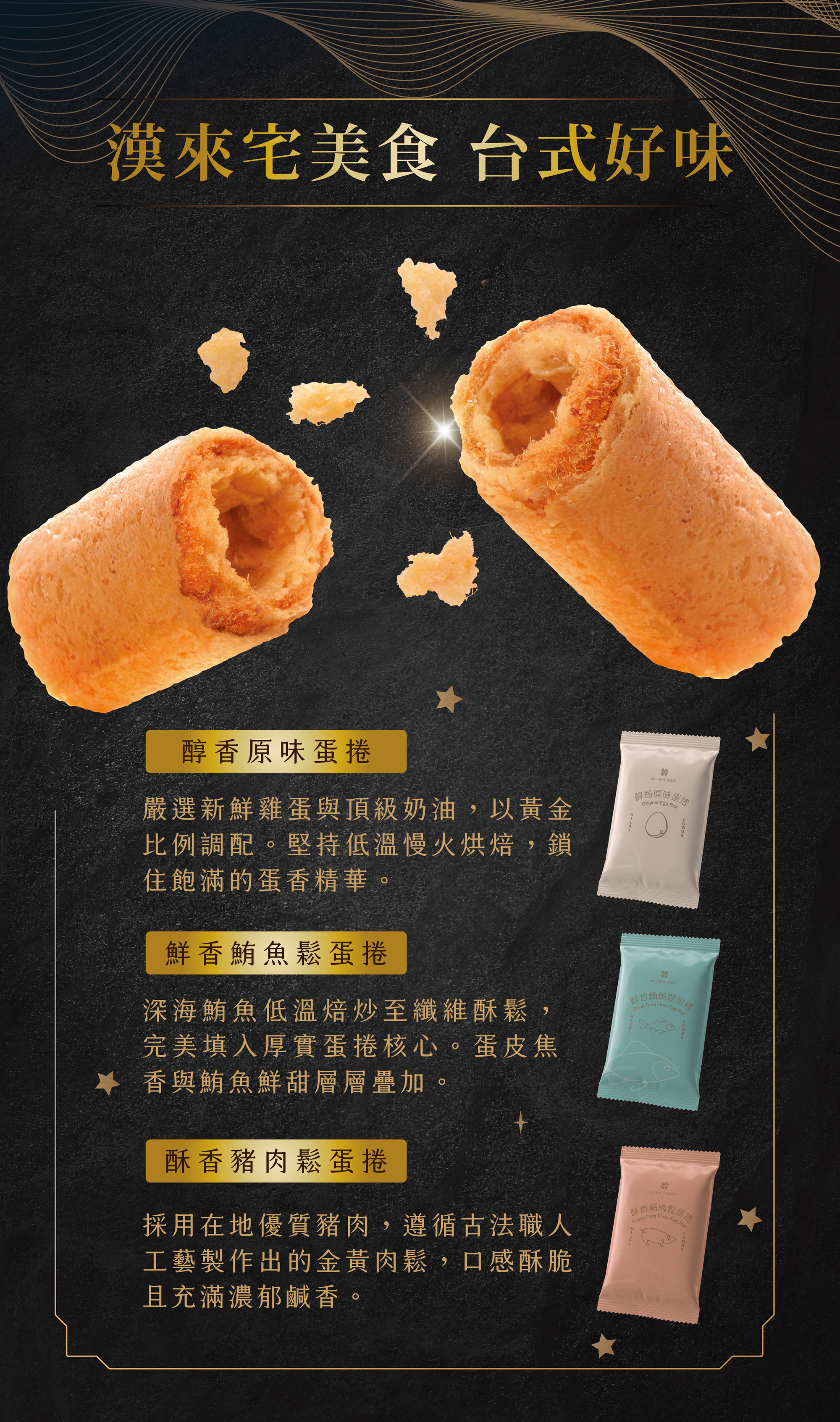 ❙ 醇香原味蛋捲、鮮香鮪魚鬆蛋捲、酥香豬肉鬆蛋捲