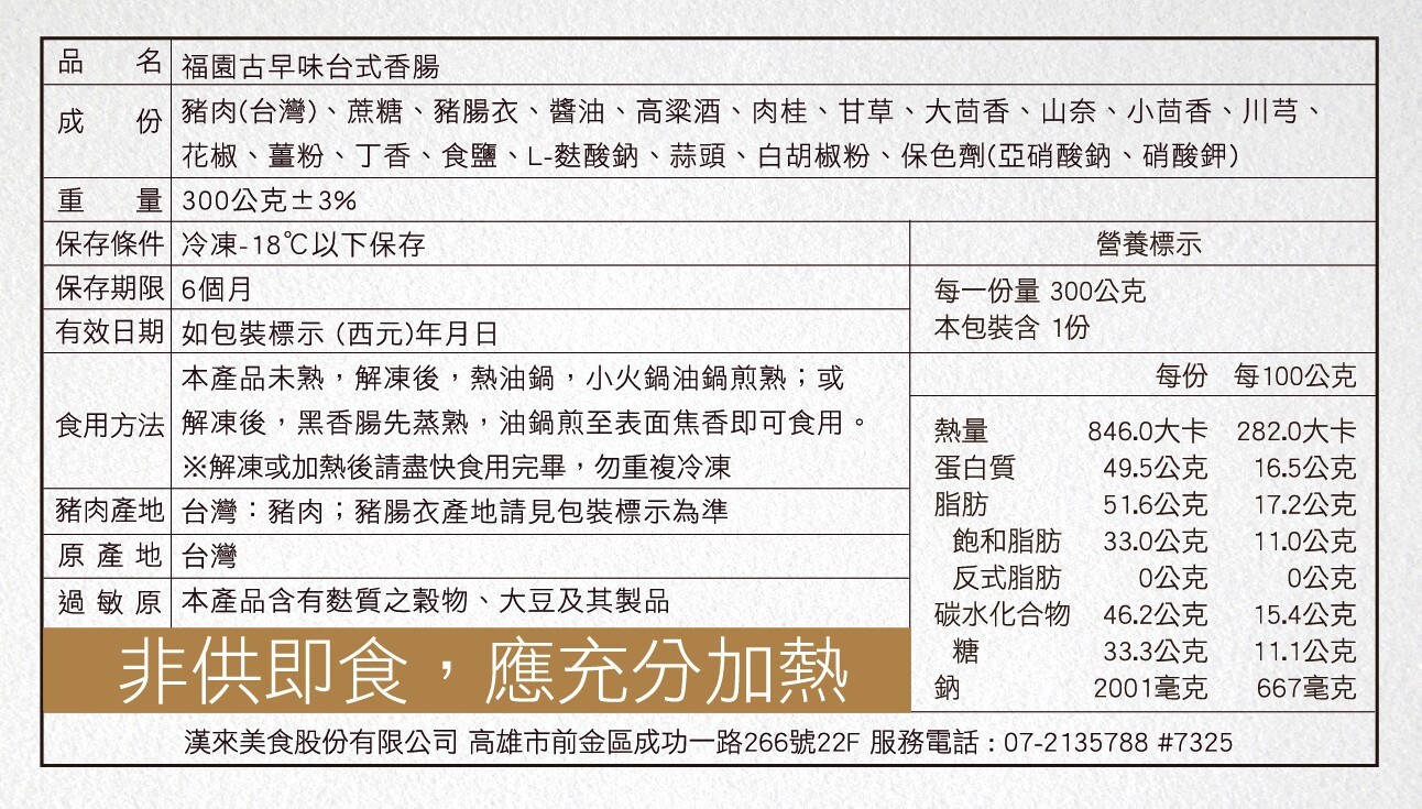 品名:福園古早味台式香腸\特級手工霸王花枝丸\手工霸王魚翅丸