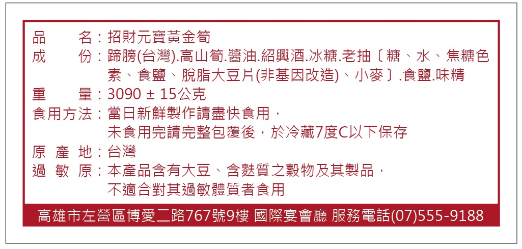 【漢來巨蛋宴會廳】招財元寶黃金筍(限高雄漢來巨蛋會館自取)