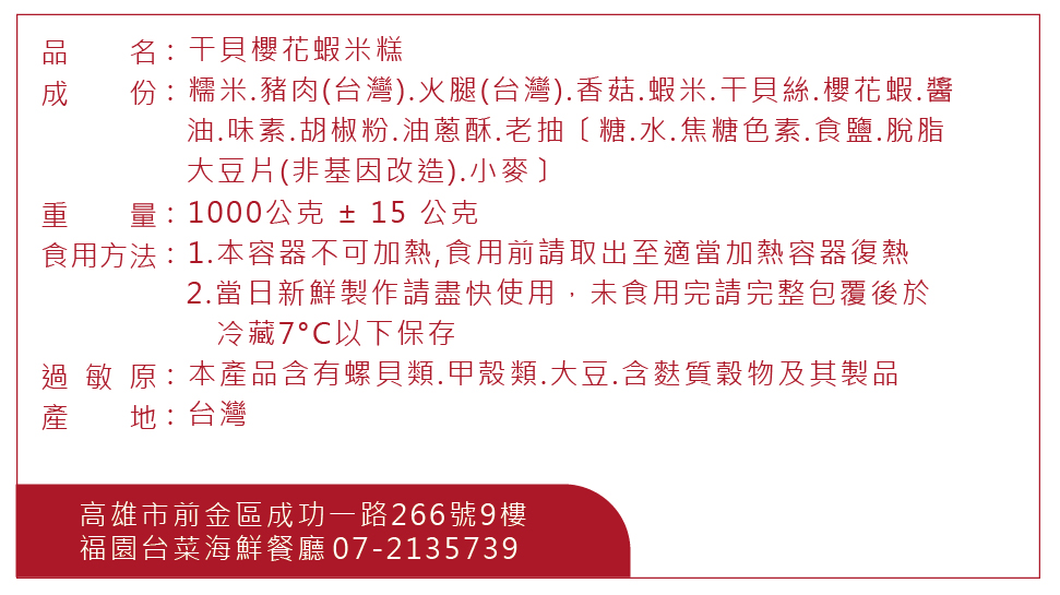 【福園台菜海鮮餐廳】干貝櫻花蝦米糕(限高雄漢來大飯店自取)