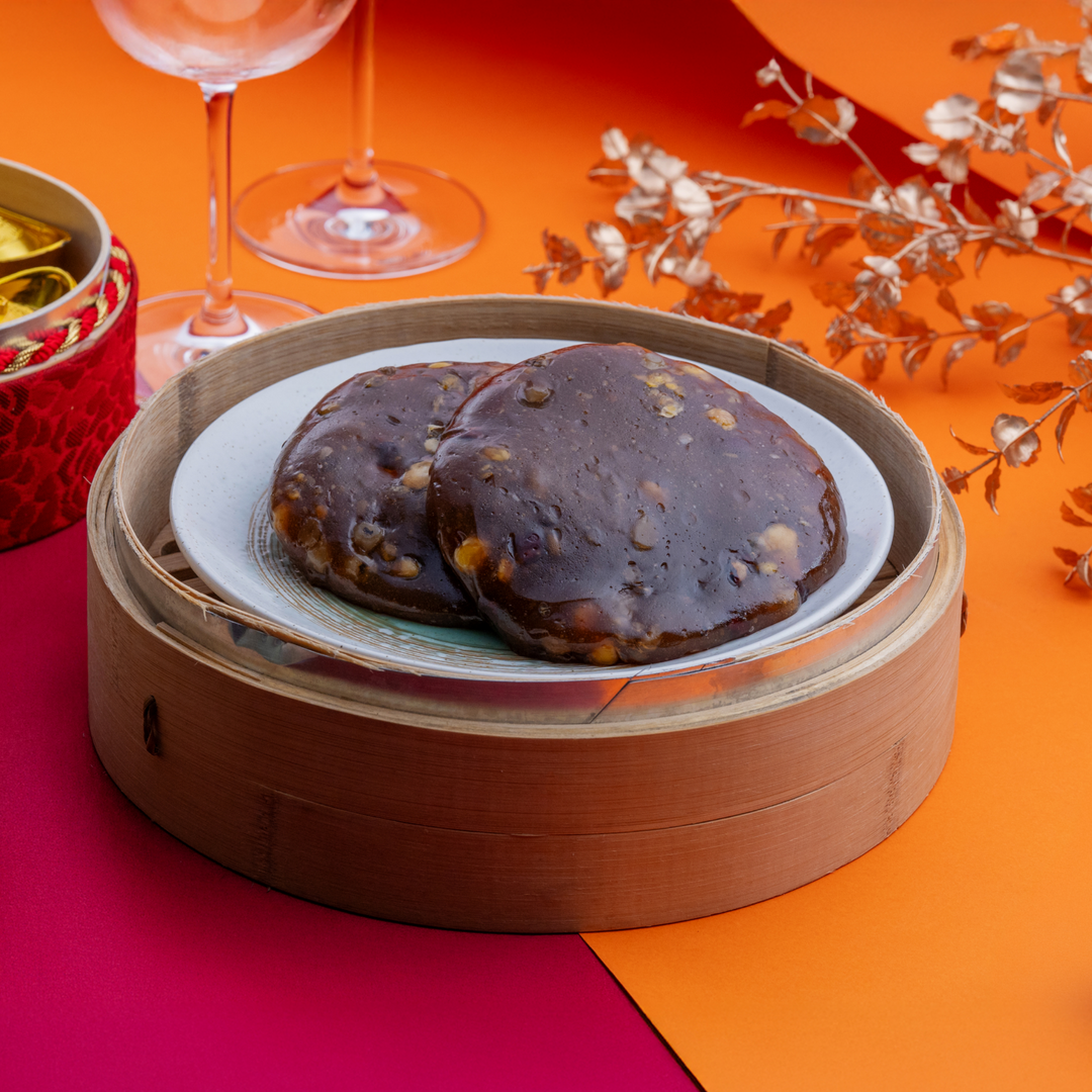 黑糖年糕風味香醇,口感比傳統年糕更為軟嫩卻不黏牙,加入桂圓、核桃增添脆口層次,為新春團圓不可少的應景甜品。