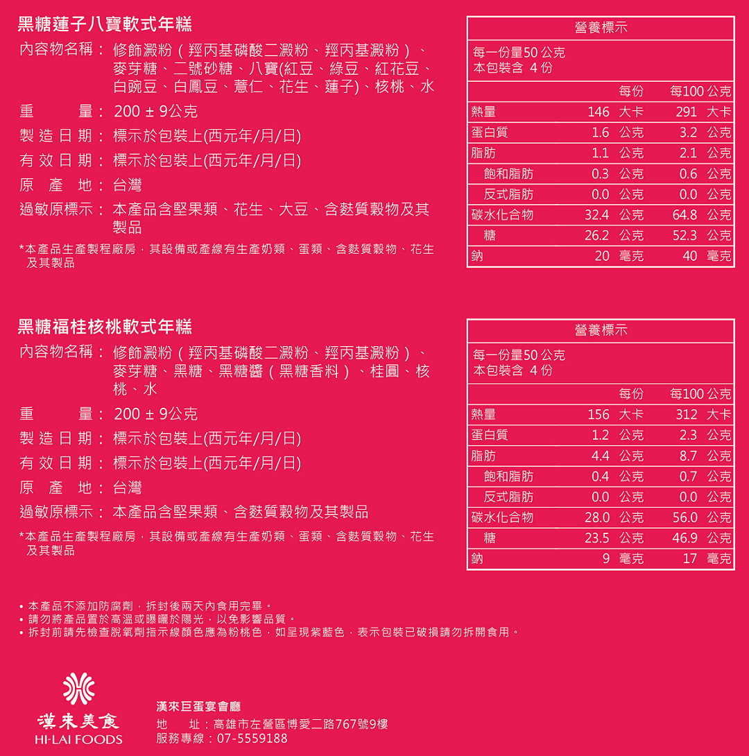 • 【自取】依訂單選取之指定取貨時間2/16(一)除夕當日14:30-16:30前往高雄漢來大飯店B4外帶年菜取貨區自取(福園出貨)