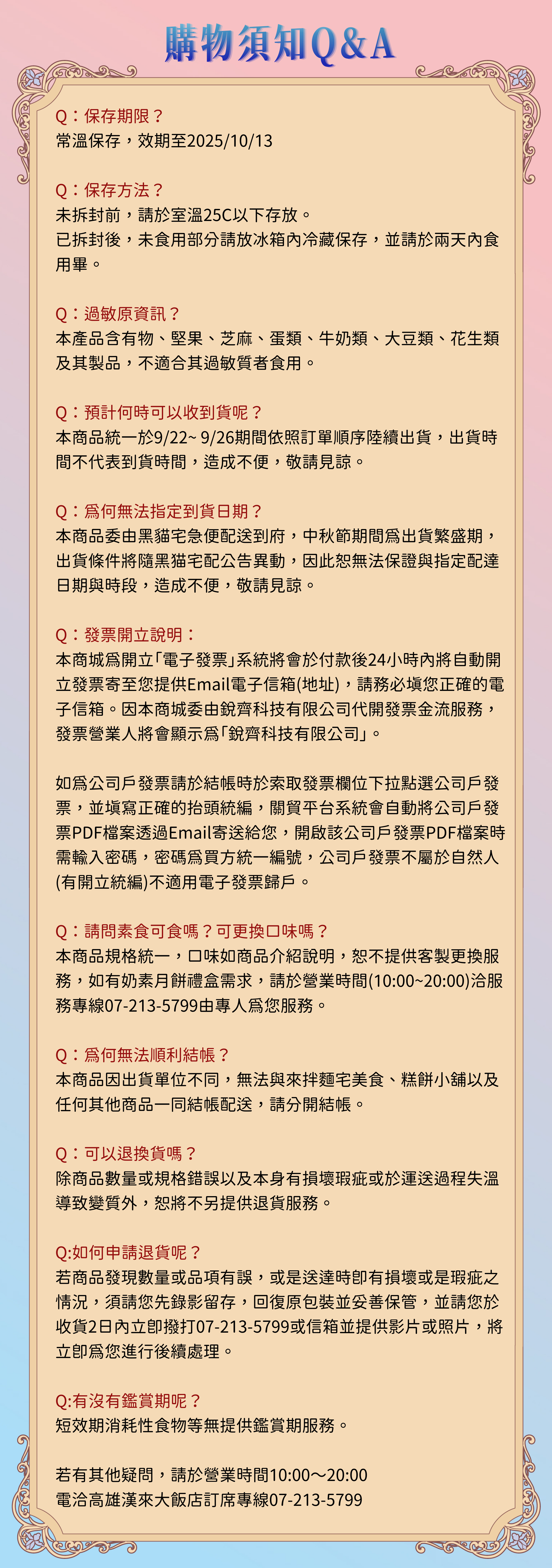 感謝熱烈支持~漢來情月中秋禮盒已全數完售!