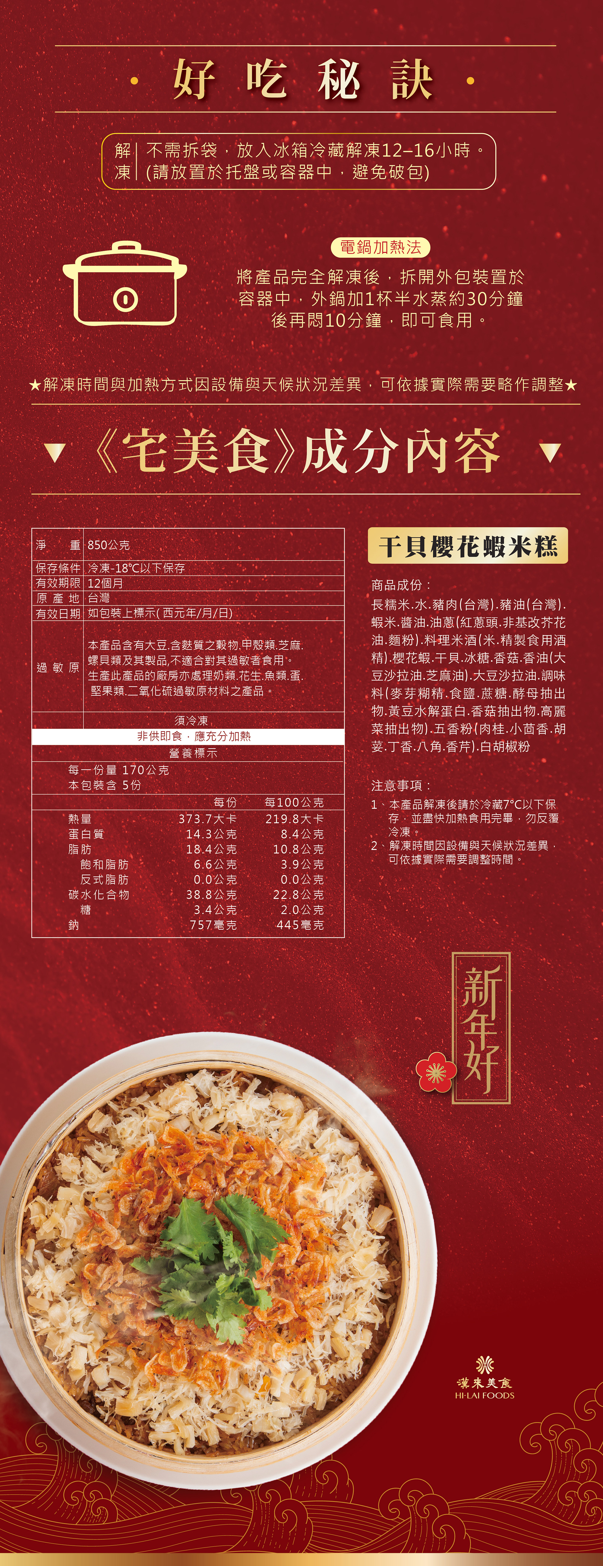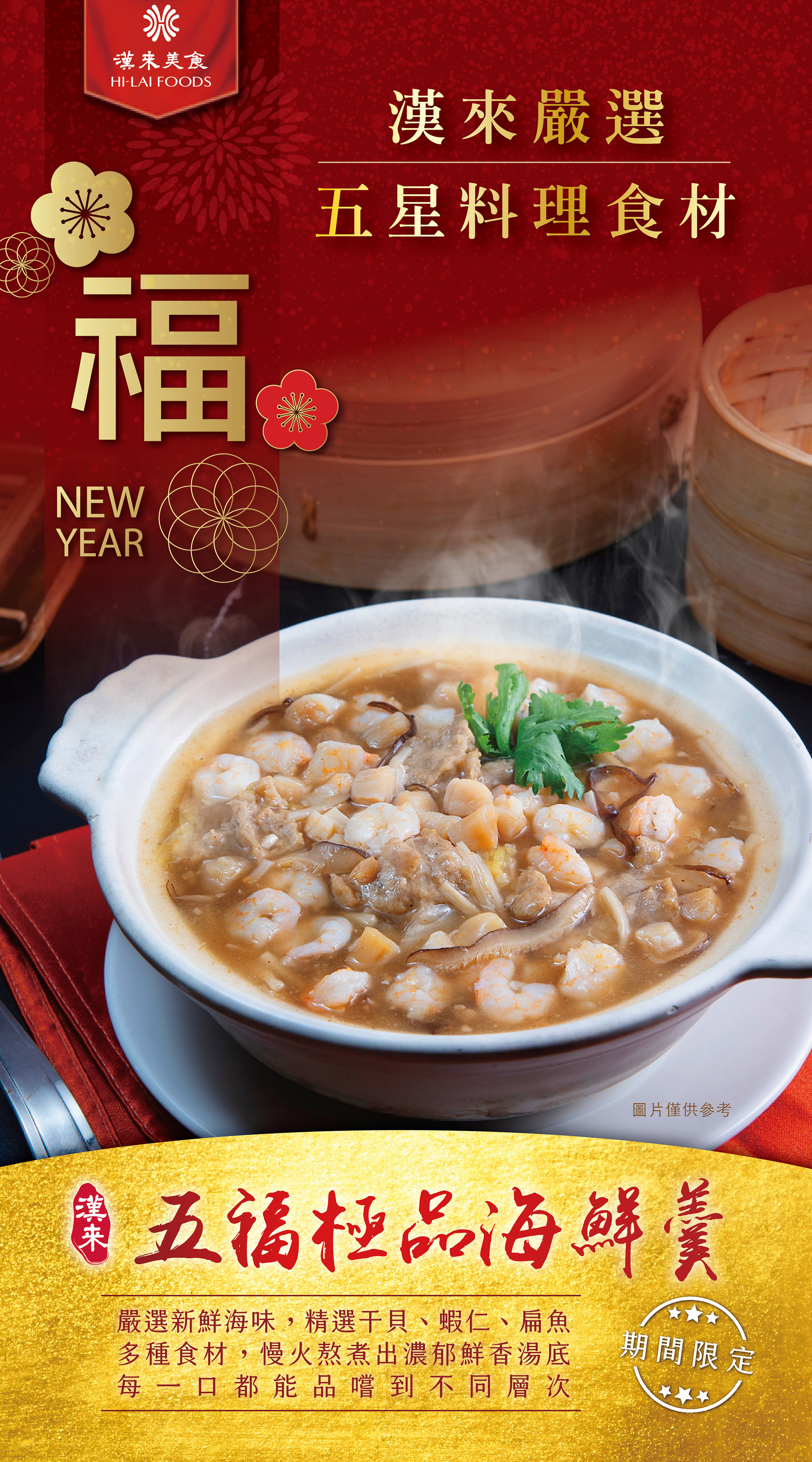 |組合商品:瑤柱金蹄燉全雞、干貝櫻花蝦米糕、五福極品海鮮羹、貴妃藥膳醉蝦、手工霸王干貝丸、福園古早味台式香腸、家鄉獅子頭、冰雪麻糬禮盒