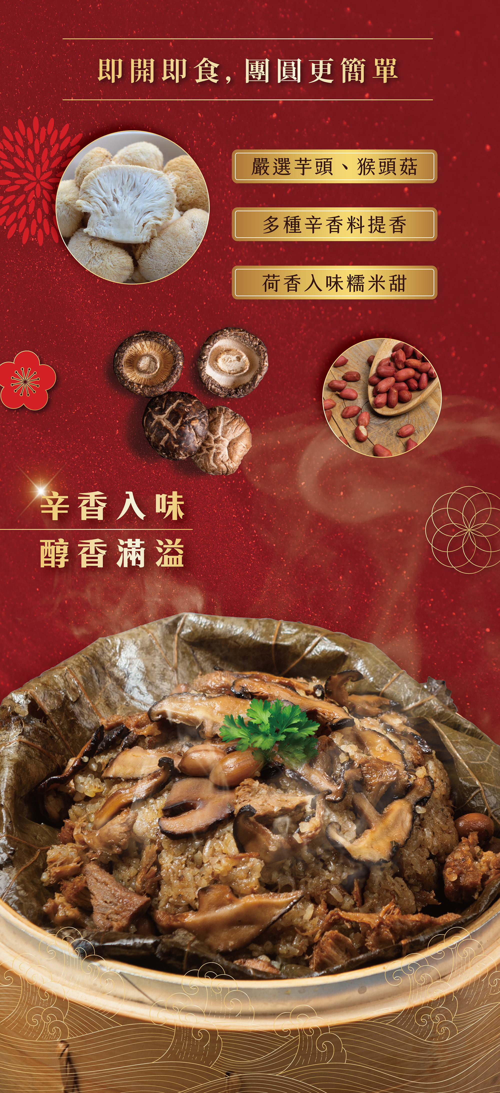|組合商品:荷香富貴米糕(蛋素)、椒香三杯杏鮑菇(非全素食產線製作)