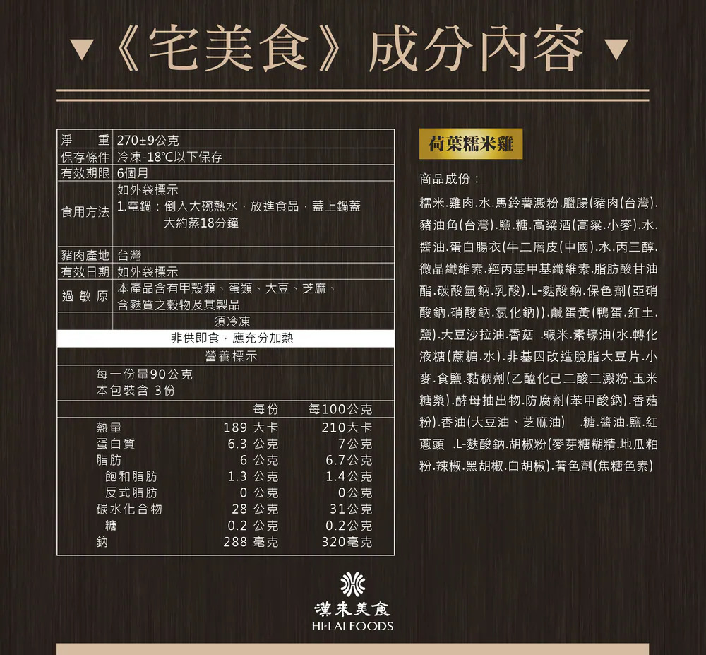 ✓荷葉糯米雞(3入/盒)原價$288 (效期:2026/08/31)