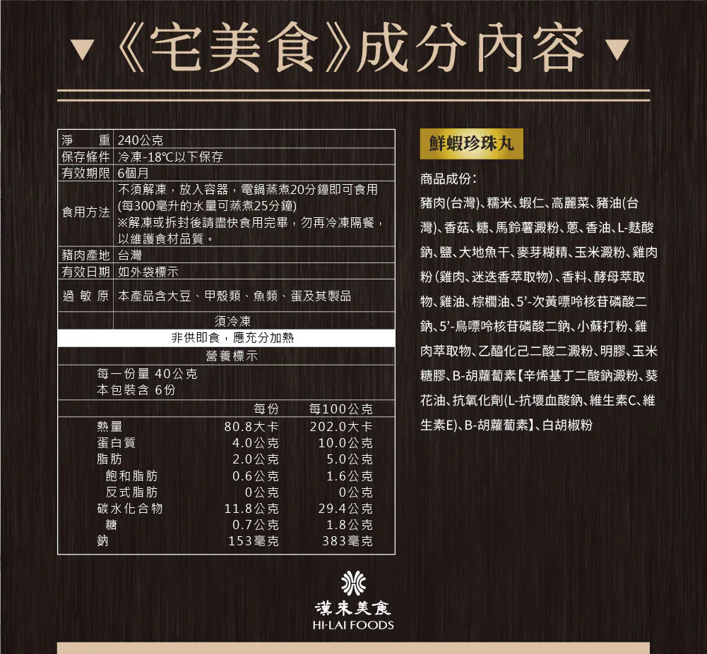 ✓鮮蝦珍珠丸(6入/盒)原價$288 (效期:2026/09/01)