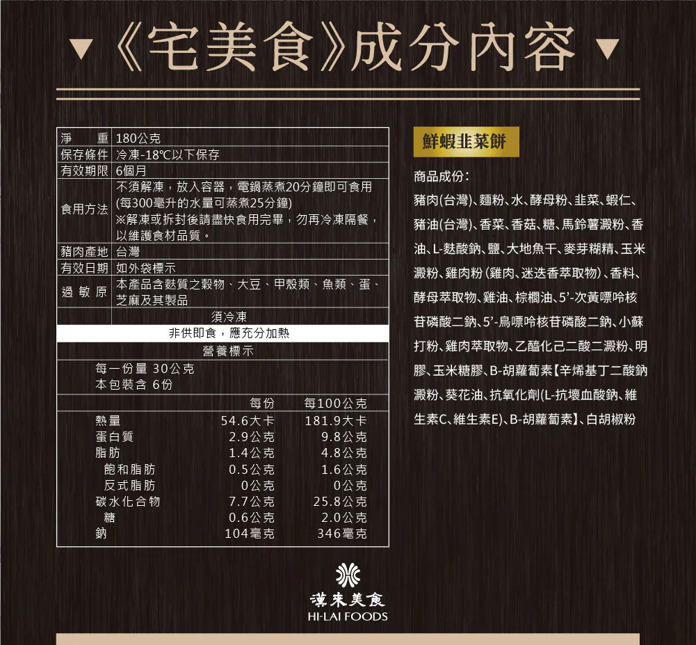 ✓鮮蝦韭菜餅(6入/盒)原價$288 (效期:2026/09/01)
