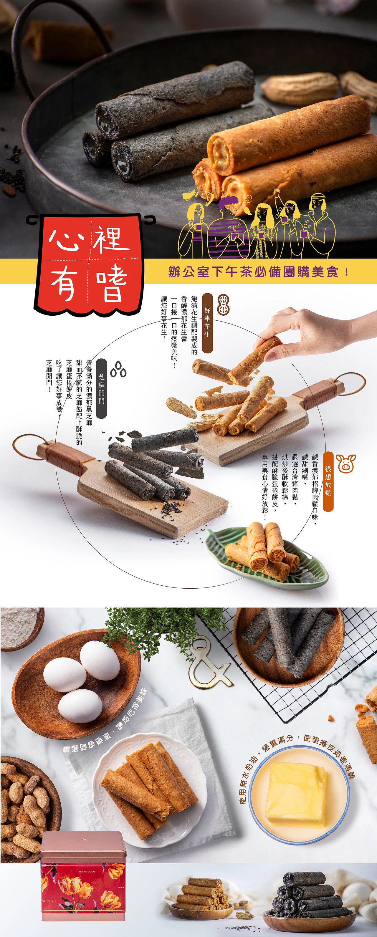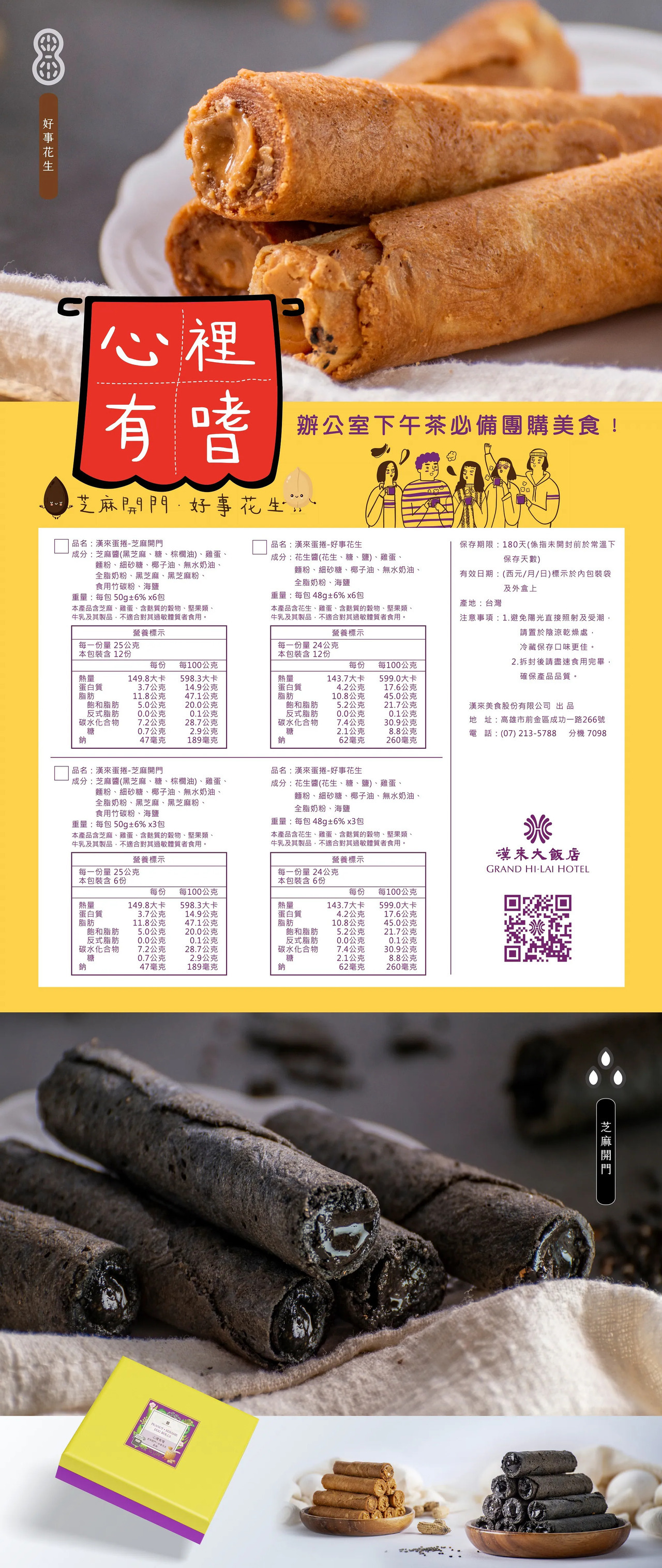 ❙ 商品內容:漢來蛋捲-芝麻開門、漢來蛋捲-好事花生、漢來蛋捲-很想放鬆