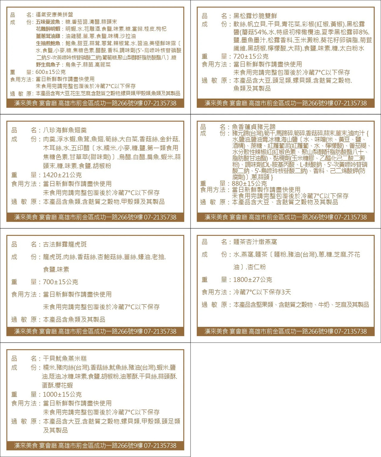 電話訂購請撥打07-213-5799由現場專人為您服務