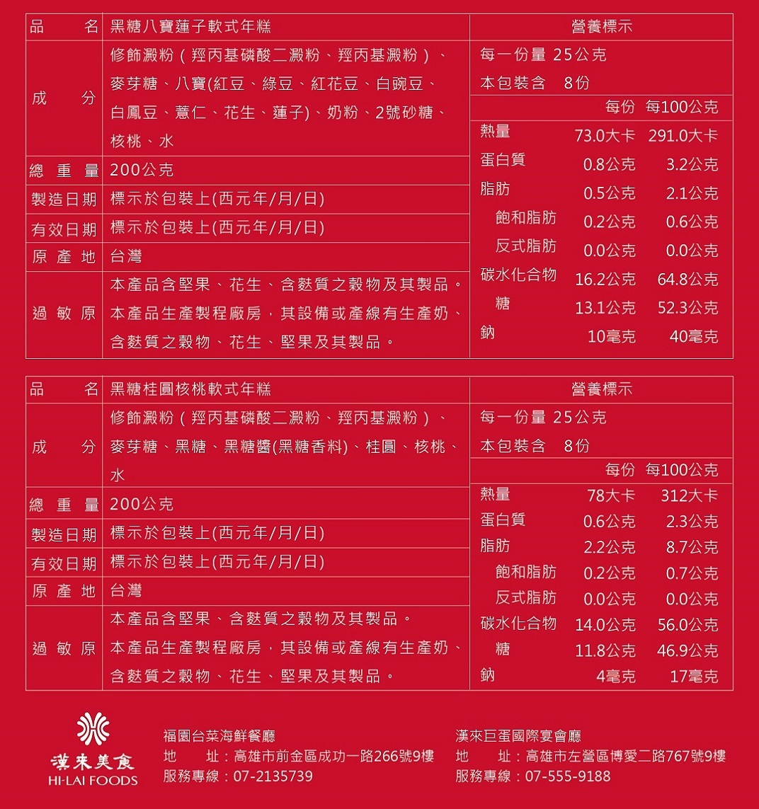 漢來巨蛋宴會廳  07-555-9188